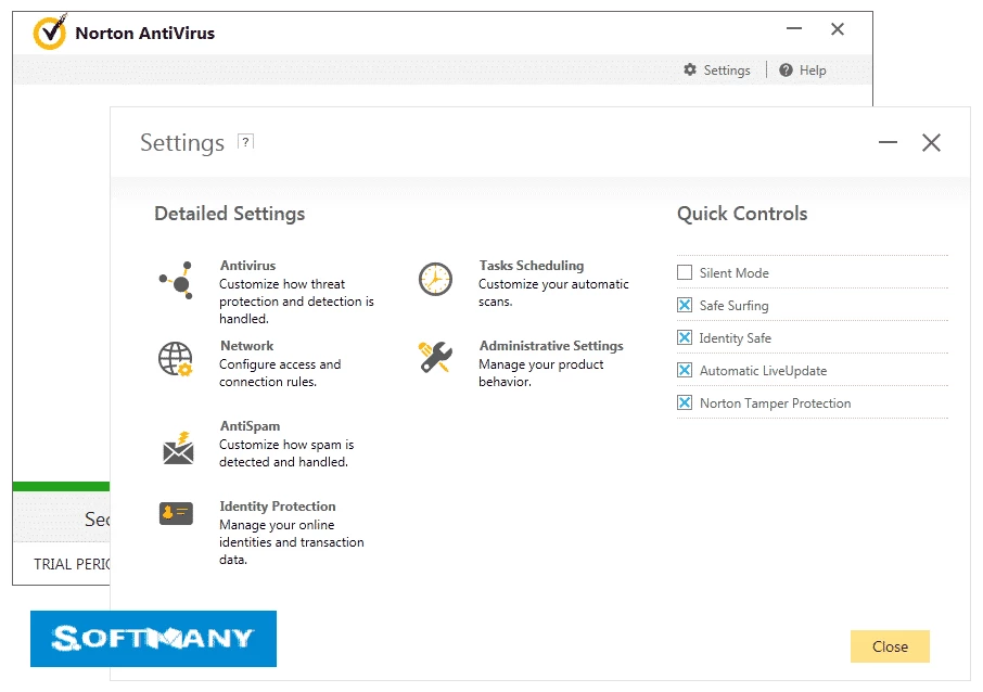 Leggermente diverso da altre utility antivirus , Norton offre un'interfaccia diversa ed elegante. L'interfaccia controlla le funzioni in uno stile diverso, con 4 grandi quadrati di controllo sullo schermo: panoramica dello stato del PC, attivazione della scansione, stato degli aggiornamenti in tempo reale e accesso alle opzioni avanzate. Le scorciatoie tradizionali per la configurazione dell'app, la gestione dell'account e la sezione Prestazioni sono disponibili nella parte superiore dell'app, che esegue le operazioni di streaming live e migliora le prestazioni del computer.
